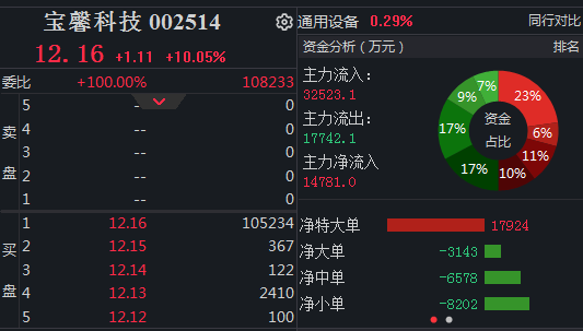 今日,宝馨科技股价强势涨停,报12.16元/股,总市值超87亿元。