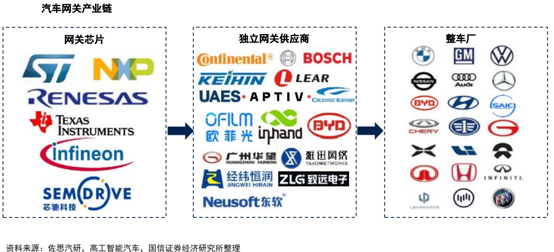 网关芯片供应商海外主要有恩智浦(NXP)、意法半导体(ST)、瑞萨、德州仪器(TI)、英飞凌等,国内厂商则有芯驰科技等。