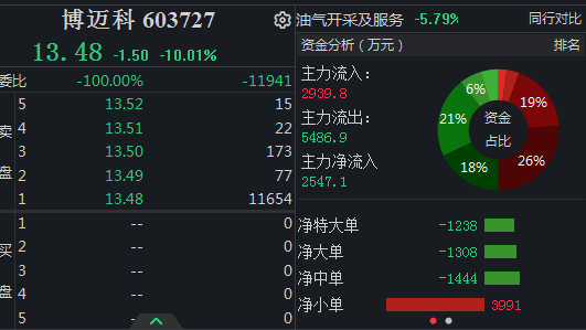油气开采及服务板块跌幅居前,博迈科跌停,中国海油、通源石油、新潮能源、中曼石油、贝肯能源、准油股份等跟跌。