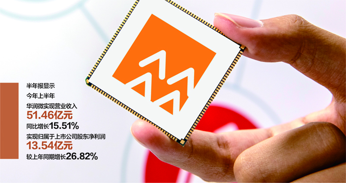 半年报显示,今年上半年,华润微实现营业收入51.46亿元,同比上升15.51%,实现归属于上市公司股东的净利润13.54亿元,较上年同期增长26.82%。
