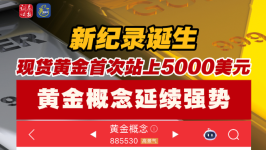 新纪录诞生!现货黄金首次站上5000美元 黄金概念延续强势