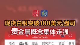 现货白银突破108美元/盎司,贵金属概念集体走强!#白银 #贵金属 #白银大涨 #贵金属概念股 #现货白银