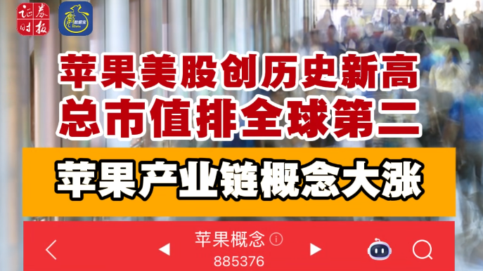 苹果美股创历史新高 总市值排全球第二 苹果产业链...