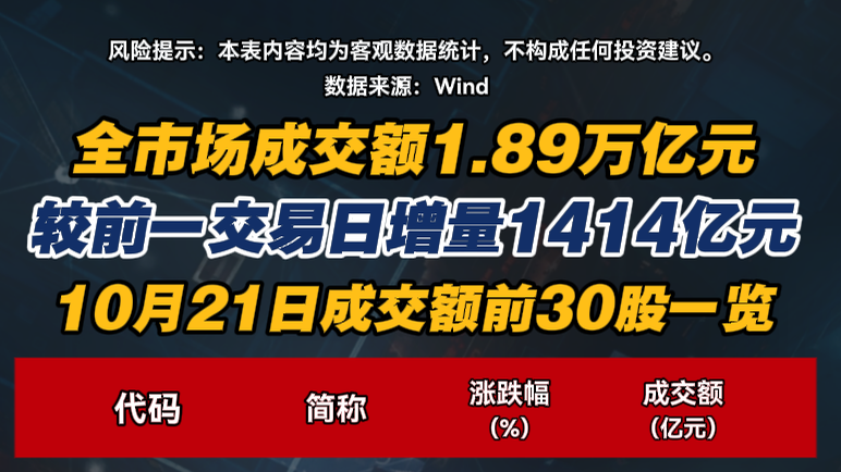 全市场成交额1.89万亿元 较前一交易日增量141...