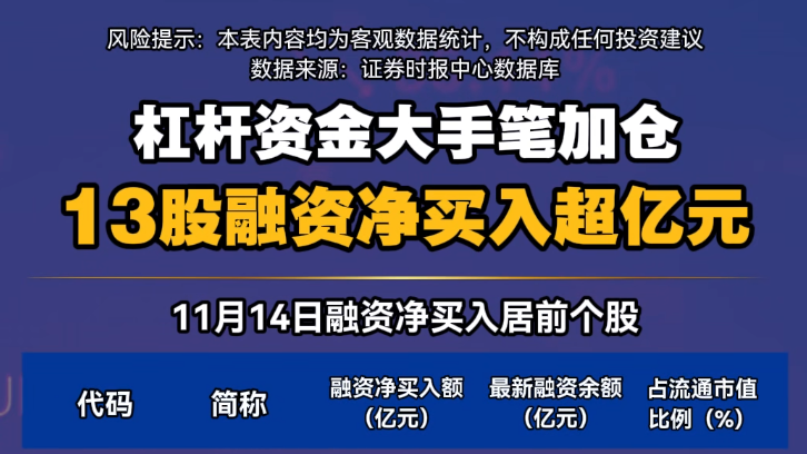 杠杆资金大手笔加仓 13股融资净买入超亿元