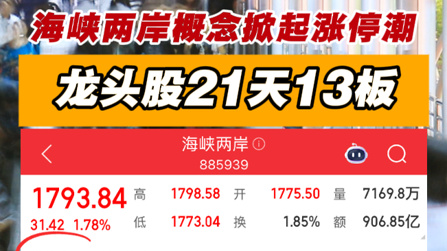 海峡两岸概念掀起涨停潮 龙头股21天13板