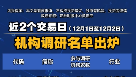 近2个交易日机构调研名单出炉(12月1日至12月2...