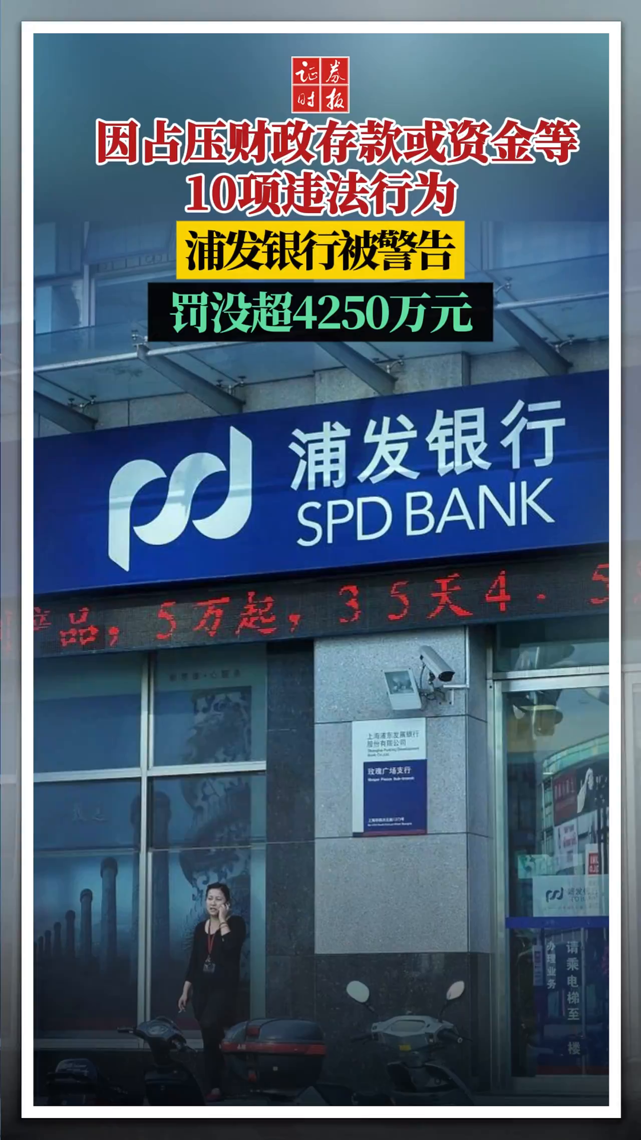 因占压财政存款或资金等10项违法行为,浦发银行被警...