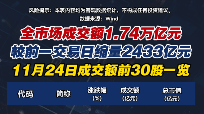 全市场成交额1.74万亿元 较前一交易日缩量243...