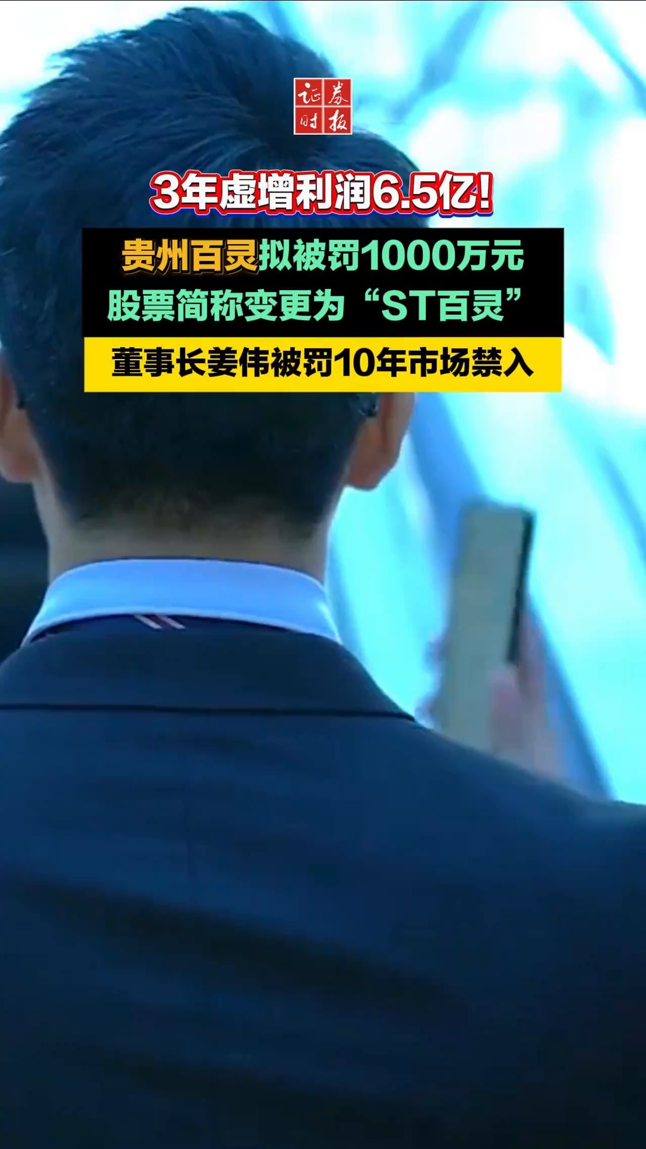 3年虚增利润6.5亿!贵州百灵被罚1000万元,董...
