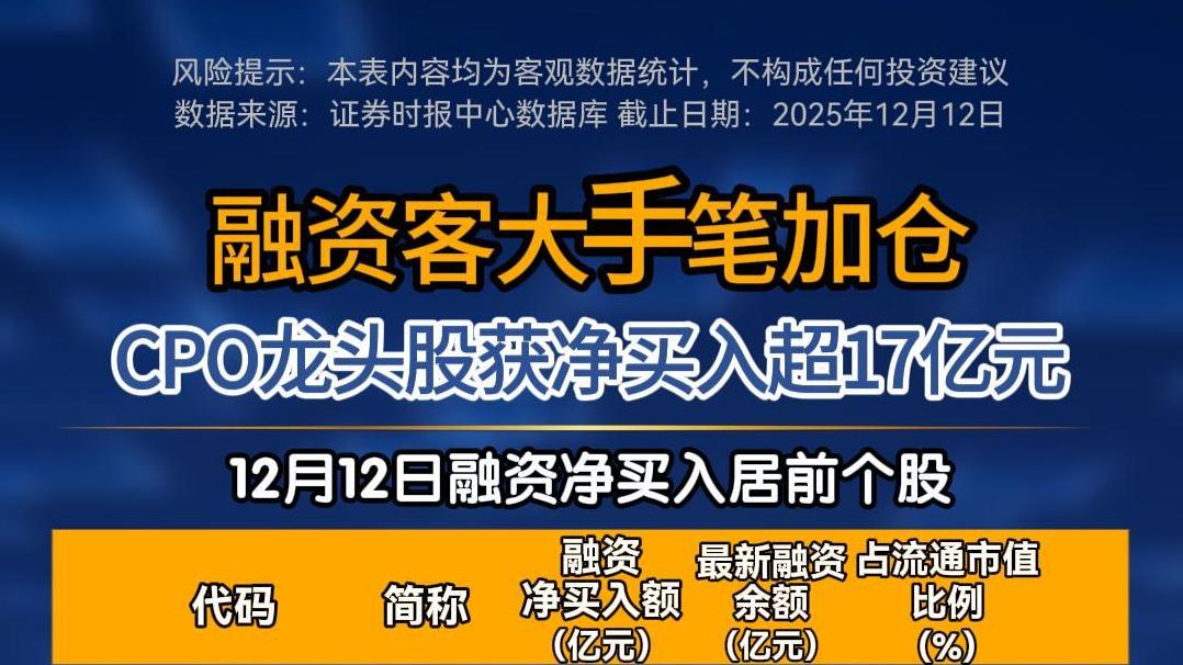 融资客大手笔加仓,CPO龙头股获净买入超17亿元!...