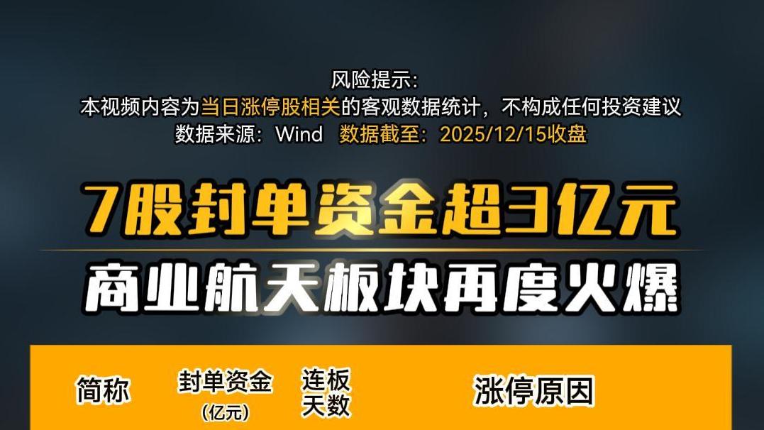 7股封单资金超3亿元,商业航天板块再度火爆!#涨停...