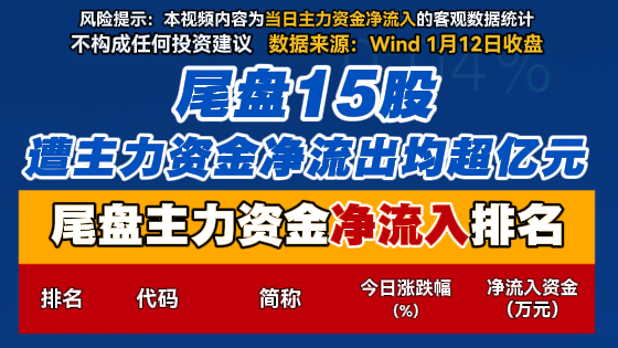 尾盘15股遭主力资金净流出均超亿元
