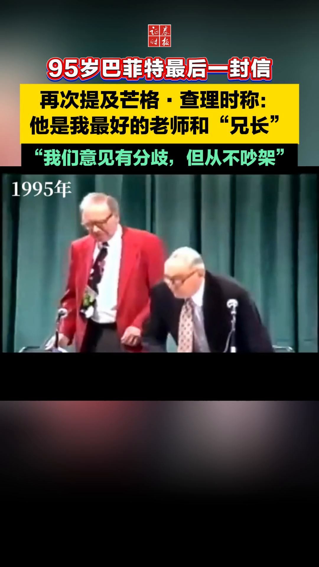 95岁巴菲特最后一封信,再次提及芒格·查理时称:他...