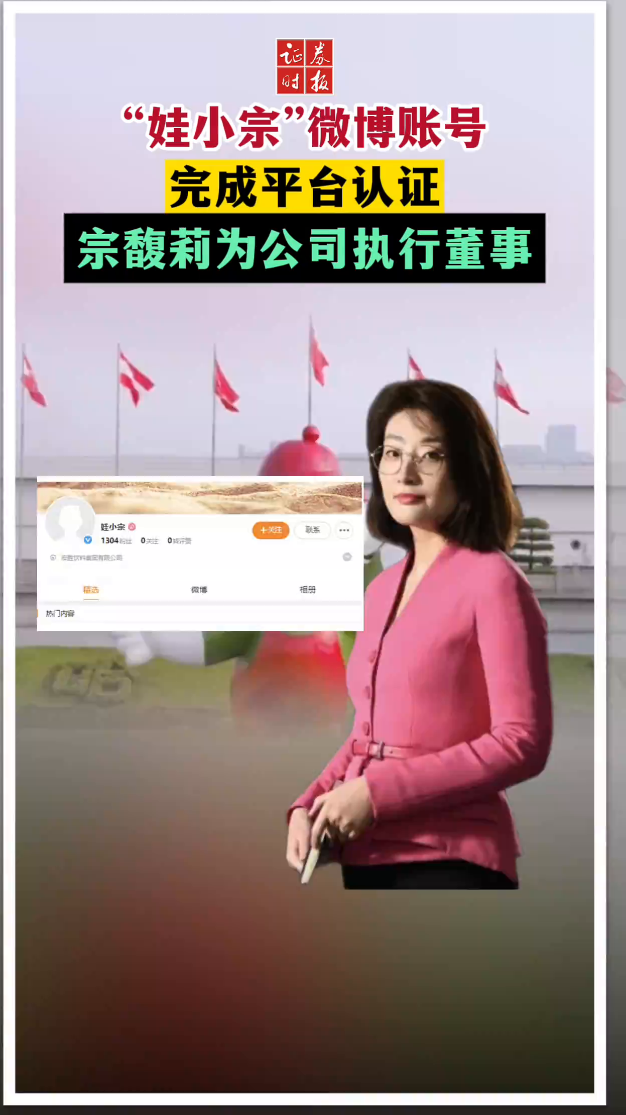 “娃小宗”微博账号完成平台认证 宗馥莉为公司执行董...
