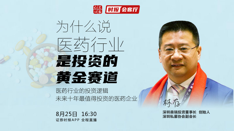 为什么说医药行业是投资的黄金赛道?未来十年最值得投资的医药企业有哪些?8月25日下午,时报会客厅连线深圳私募协会副会长林存,投资者若想向嘉宾提问可在证券时报APP评论区域留言,我们将在直播中请嘉宾解答。