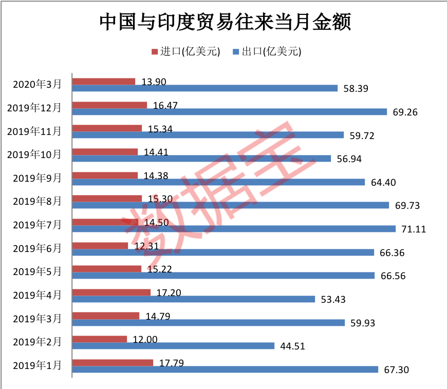 3月份复工复产开始,中国各行业已经充分运作起来,对资源、初级产品的需求持续扩大,表现在对印度3月份的进口额受疫情影响较小,相比去年同期仅有小幅下降。