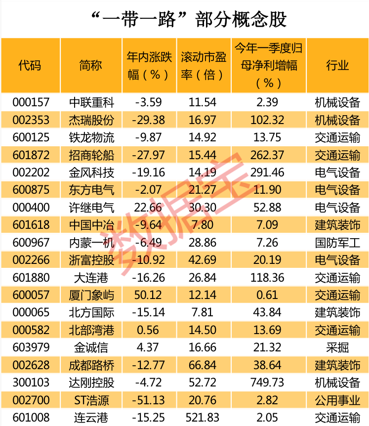 一季度“一带一路”国家投资逆势增长11.7%,已经显露出巨大的机会,对具有相关业务的上市公司是非常大的潜在利好。不过,因为行业、经营不同,还是需要结合具体的盈利能力进行综合分析。(数据宝 王林鹏)