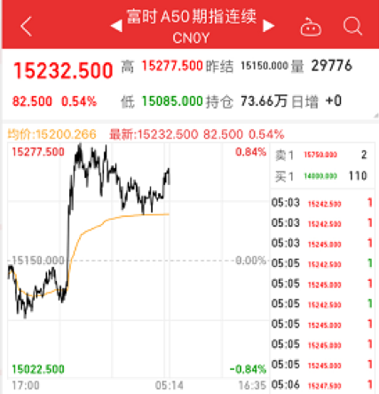 对A股的影响方面,从市场来看,富时A50期货已翻红。