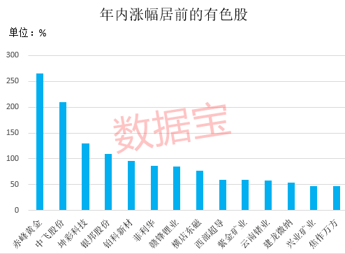 相比之下,业绩增长的有色股依然受到资金青睐。据统计,年内有4只有色股涨幅翻倍,分别是赤峰黄金、中飞股份、坤彩科技、银邦股份,这4股三季报净利润均同比增长。赤峰黄金年内累计涨幅266%排在首位,公司前三季度净利润为5.07亿元,同比增长196.52%。
