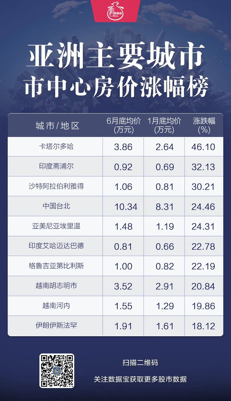 今年上半年亚洲楼市表现不佳,房价涨幅超过20%的城市中,只有卡塔尔多哈、印度斋浦尔两个城市进入前十。其中,卡塔尔多哈市中心公寓均价从2.64万元大涨至3.86万元,涨幅高达46.1%。多哈是卡塔尔的首都和最大的城市,也是波斯湾沿岸的著名港口,而卡塔尔是中东富得流油的国家之一,有着亚洲首富之称。