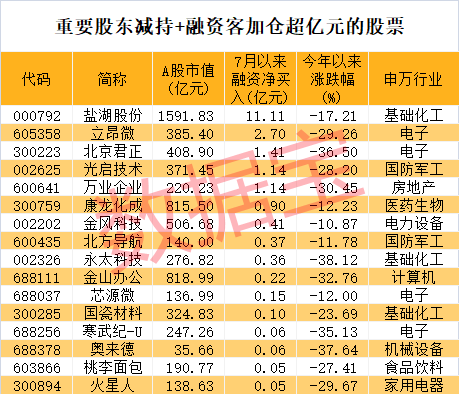 数据宝统计,重要股东净减持超亿元的股票中,7月以来北上资金净减持超亿元的有7股,分别是明阳智能、盐湖股份、保隆科技、德赛西威、永太科技、桃李面包、华阳集团。