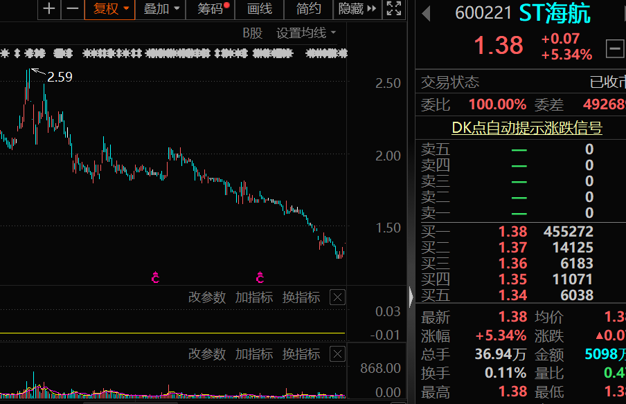受利空落地影响,ST海航昨日收于涨停,最新价报1.38元。不过,今年内ST海航股价跌幅仍超过25%,相比去年反弹高点已腰斩。