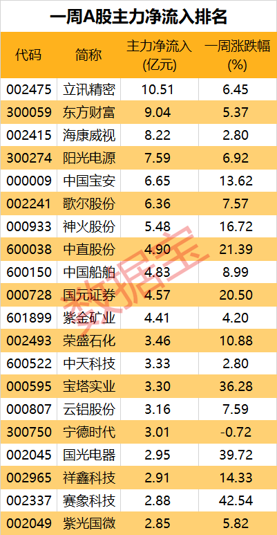 净流入方面,立讯精密一股获主力10亿元以上净流入。同一板块的歌尔股份和紫光国微也获得主力青睐。此外,神火股份、紫金矿业、云铝股份等有色股以及东方财富、国元证券等非银金融同样获主力资金买入。(数据宝 张智博)