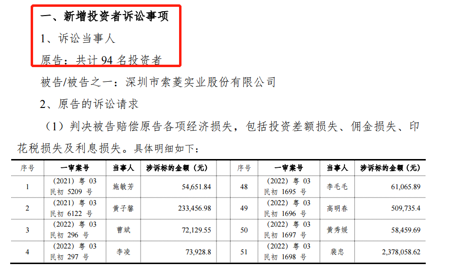 另外,公司收到多份深圳中院送达的《民事判决书》,涉及33位投资者。诉讼标的金额总计876.4万元,法院认定的赔偿金额为871.5万元,意味着法院基本全部支持了投资者的诉讼请求。
