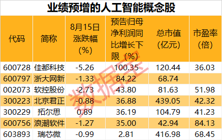 7只人工智能概念股业绩预增