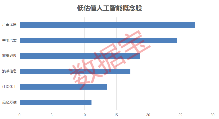 估值上来看,人工智能概念股普遍估值偏高,最新滚动市盈率平均超过60倍。其中仍有部分个股估值处于较低区间,不足20倍,包括昆仑万维、江南化工、浪潮信息、海康威视。昆仑万维公告表示,人工智能的应用将为互联网企业不断赋能,进一步提升运营效率。公司凭借前瞻的战略眼光已完成元宇宙布局及AI技术在社交娱乐、信息分发等领域的应用。(数据宝 刘俊伶)