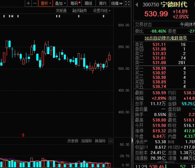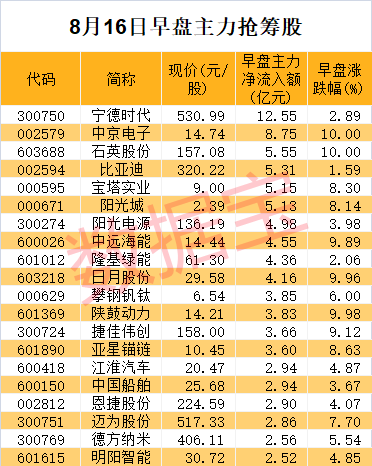 早盘主力资金大举杀入新能源赛道,宁德时代净流入额12.55亿元最高。