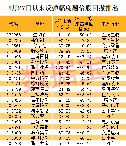 从回撤的高位股看,成交活跃度下滑和业绩不佳是股价大幅回撤的两大原因。