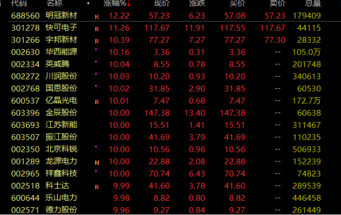 此前持续强势的光伏板块今天早盘再度爆发,HJT电池、TOPCON电池位居概念涨幅榜前列,个股掀起涨停潮。粗略统计,华西能源、英威腾、川润股份等10多只光伏概念股涨停。