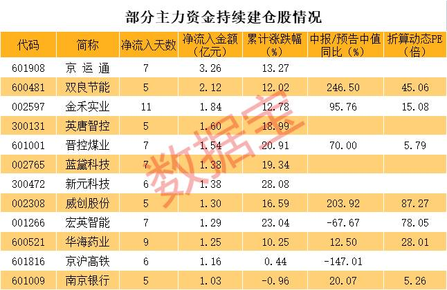 除了双良节能,还有11只主力资金持续净流入5日及以上的个股累计吸金超过亿元,京运通、金禾实业、英唐智控等个股主力资金净流入位居前列。从基本面来看,甜味剂龙头金禾实业预计上半年净利8.3亿元-8.9亿元,比上年同期增长88.93%-102.59%。晋控煤业预计上半年净利润为23亿元左右,同比增加70%左右。(数据宝 陈见南)