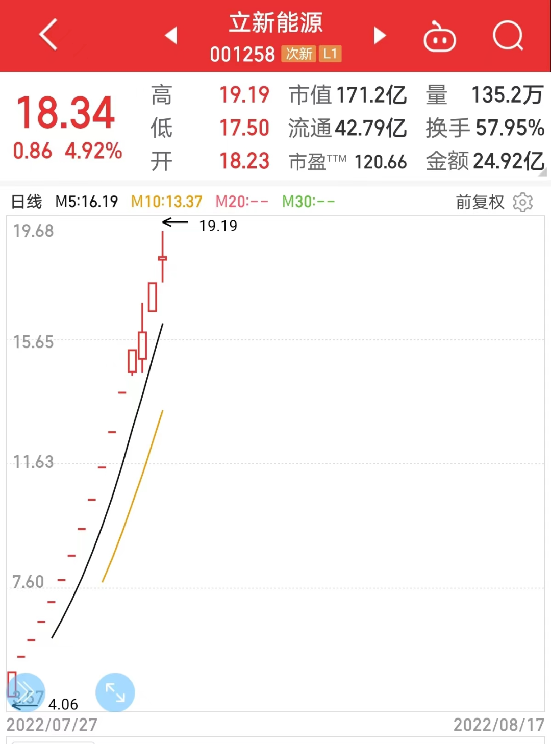 立新能源今日上涨4.92%,最新市值突破170亿元。该公司主业为风力发电、光伏发电,上市不足一个月,最新收盘价与发行价相比,累计涨幅达到4.43倍。剔除上市首日后,证券时报·数据宝统计,近一年上市的次新股中,立新能源累计涨幅排名第一位。