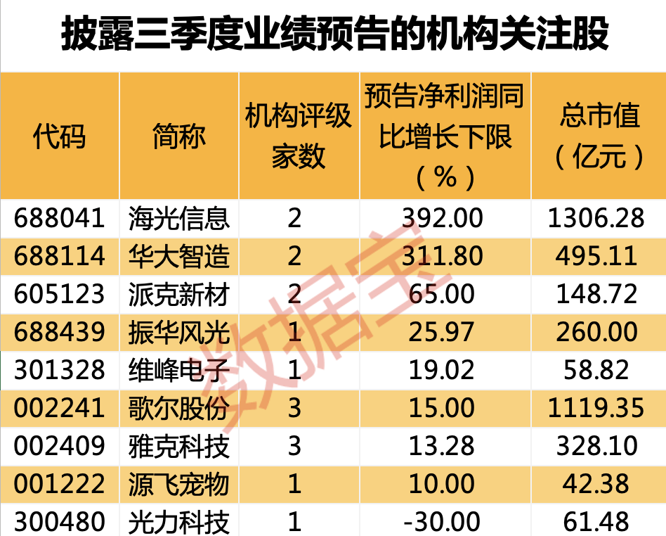 部分上市公司抢先发布三季报业绩预告,业绩超预期的个股备受机构关注。