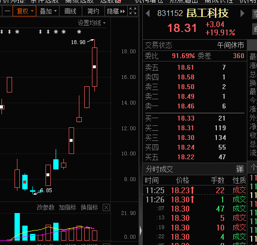 今日早盘,上市11天的昆工科技再度冲高,盘中最高上涨近25%,收盘报涨19.91%。昆工科技9月1日上市即上涨51.21%,随后小幅回落。9月7日,该股以30cm涨停启动涨势,本周二再度收获30cm涨停,最新价较发行价已上涨215%,成为今年以来北交所表现最牛的新股之一。