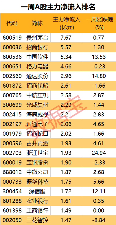 一周主力资金动向出炉,净流出电力设备板块,加仓白酒和银行股。