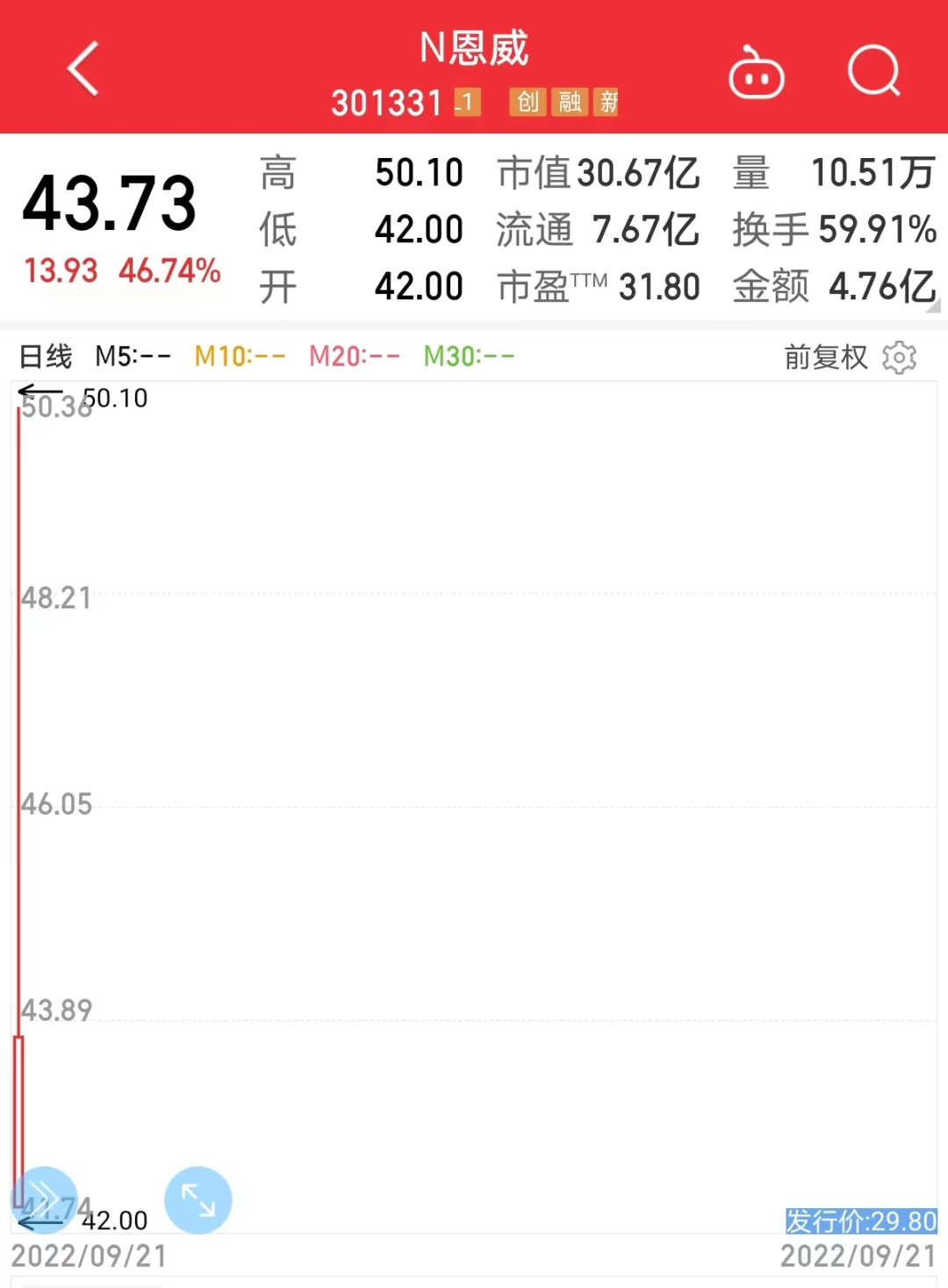 9月21日,A股共4只新股上市,分别是N恩威、N捷邦、N磁谷、N诺诚。截至收盘,除了N恩威大涨46.74%之外,另外3只新股都是下跌的,这意味着有3只新股今日出现破发。按照科创板和创业板中一签新股500股计算,今日几只下跌的新股,少则一签亏910元,多的一签亏1810元。