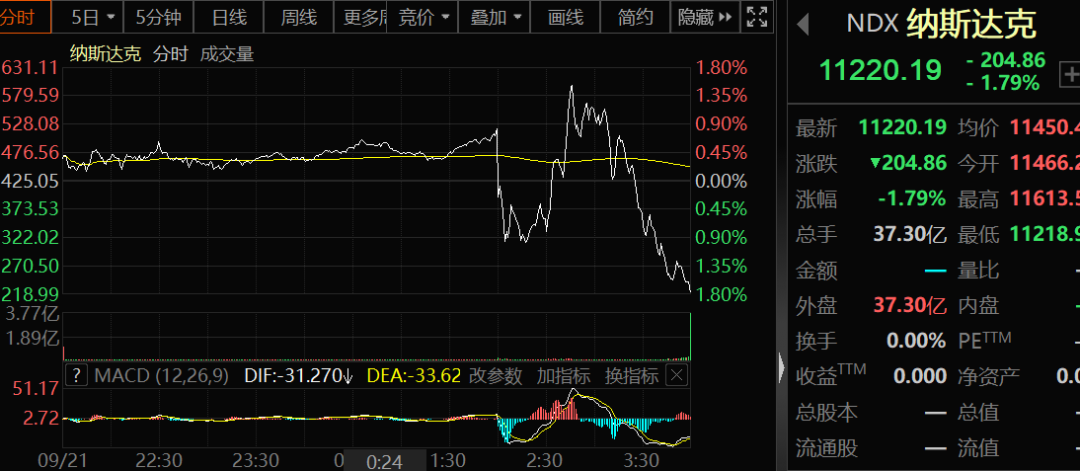 受此消息影响,美股三大股指剧烈波动,盘中急速跳水,消息宣布五分钟内下跌约1%,之后又快速反弹,但尾盘再度跳水。最终道指收盘报跌1.7%,纳指收盘跌1.79%,标普500收盘跌1.71%。