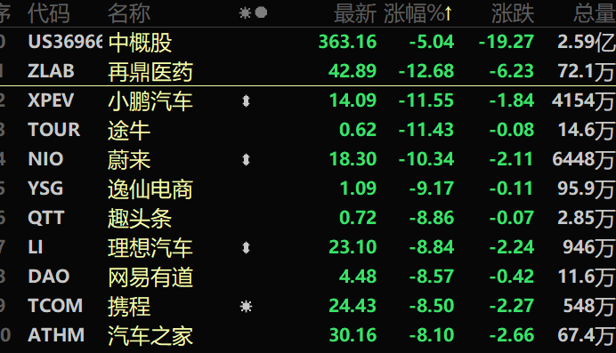 大型科技股全线走低,苹果、亚马逊、奈飞、META跌2%以上,中概股中小鹏汽车、蔚来跌幅超过10%。