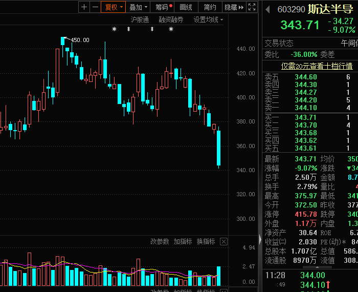 斯达半导早盘一度逼近跌停,股价创近两个月以来新低,午间收盘下跌9.07%,市值蒸发近60亿元。该股近两周连续回调,累计跌幅达到18.22%,最新滚动市盈率为99.31倍,是自2020年3月上市后开板以来最低。斯达半导是IGBT(功率半导体)龙头,车规级 IGBT模块持续放量,SiC MOS开始大批量装车用,2022年上半年公司车规级 IGBT模块合计配套超50万辆新能源汽车。