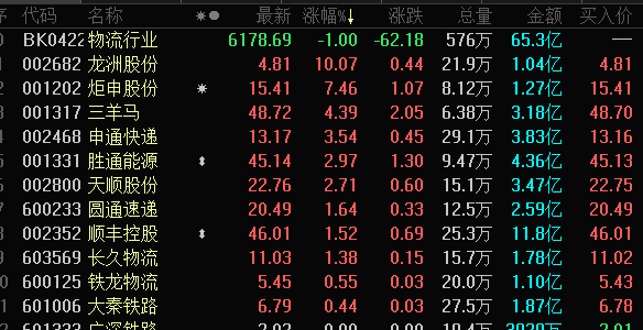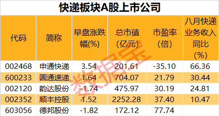 9月23日早盘部分快递、公路货运股逆市上涨。