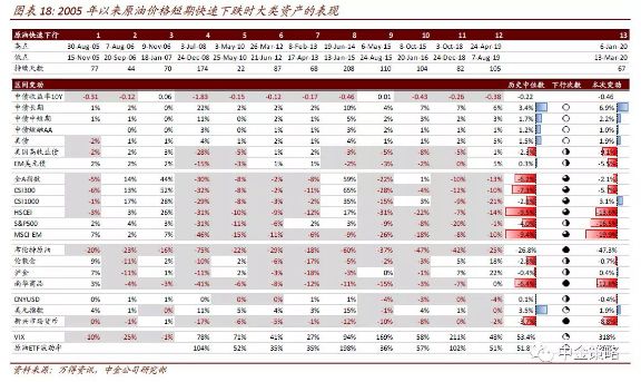 中金公司报告回顾了2005年以来原油价格快速下跌时大类资产的表现发现,