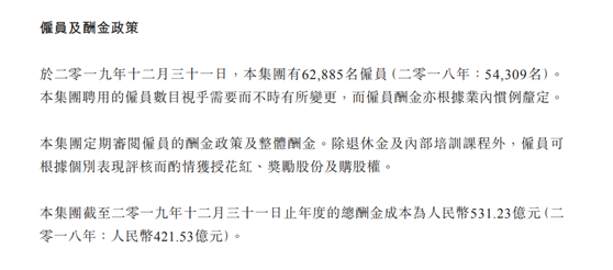 3月18日,港股“巨无霸”腾讯控股发布了2019年财报,2019年全年营业收入为3772.89亿元人民币,年度盈利958.88亿元,以此计算,腾讯日赚2.6亿元。非通用会计准则下,归母净利润943.51亿元,更让人羡慕的是,截至2019年12月31日,腾讯派发的总薪酬成本高达531.23亿元,集团员工人数62885名,以此计算,腾讯员工平均年薪高达84万元,平均月薪7万元。