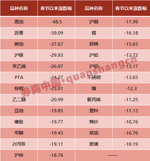 在疫情和石油价格战双双冲击下的大宗商品,正在陷入泥潭。