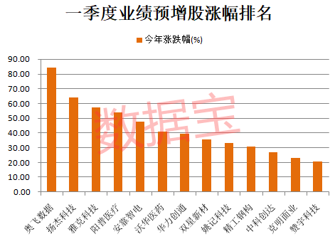 部分一季度业绩预增股走势强劲。