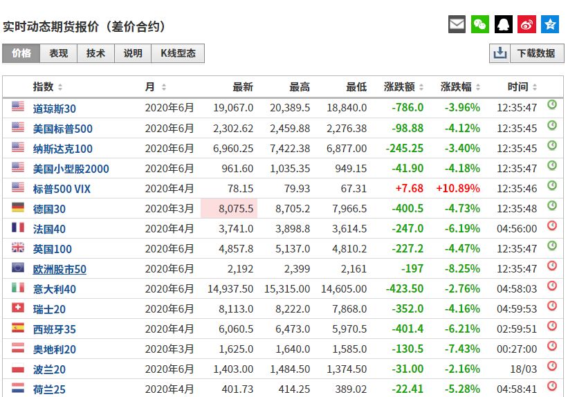 欧美股市期指早盘也继续调整。截至发稿时间,欧洲三大股指期货均跌逾4%,美股三大股指期货均一度跌逾4%,盘中接近熔断。