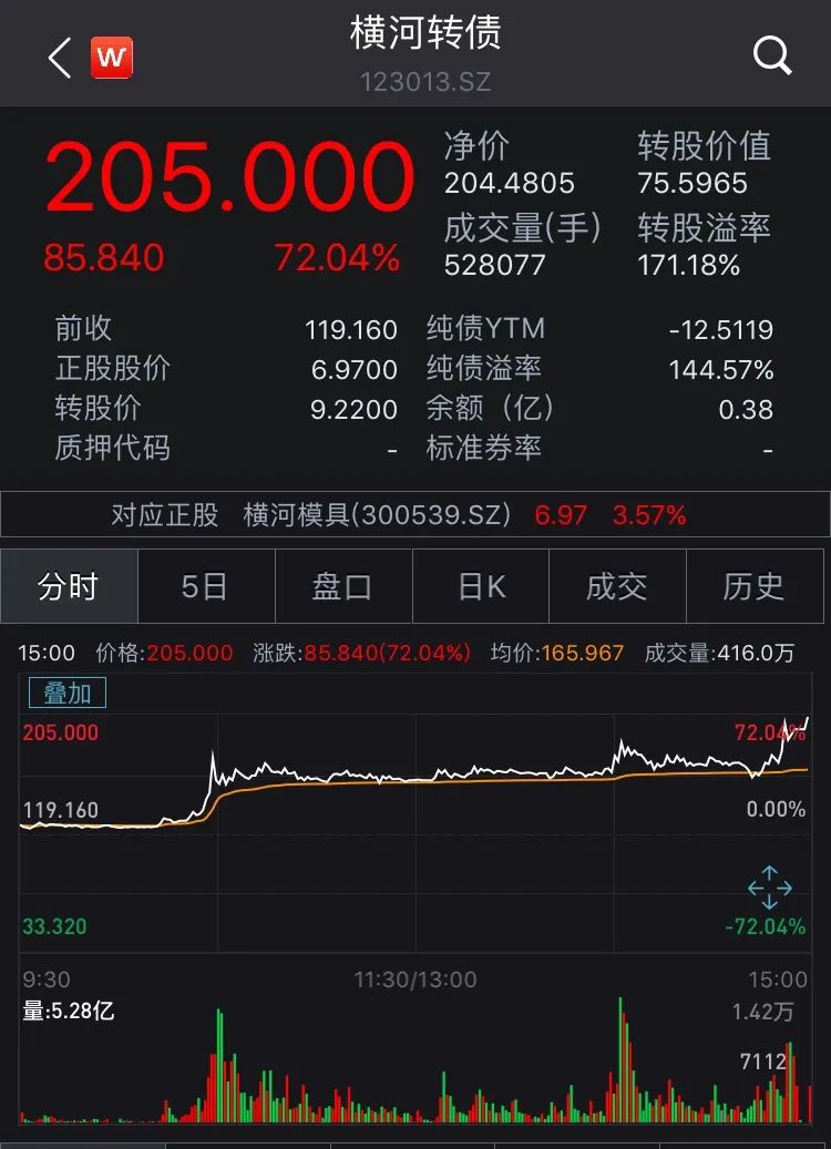 横河转债涨逾70%